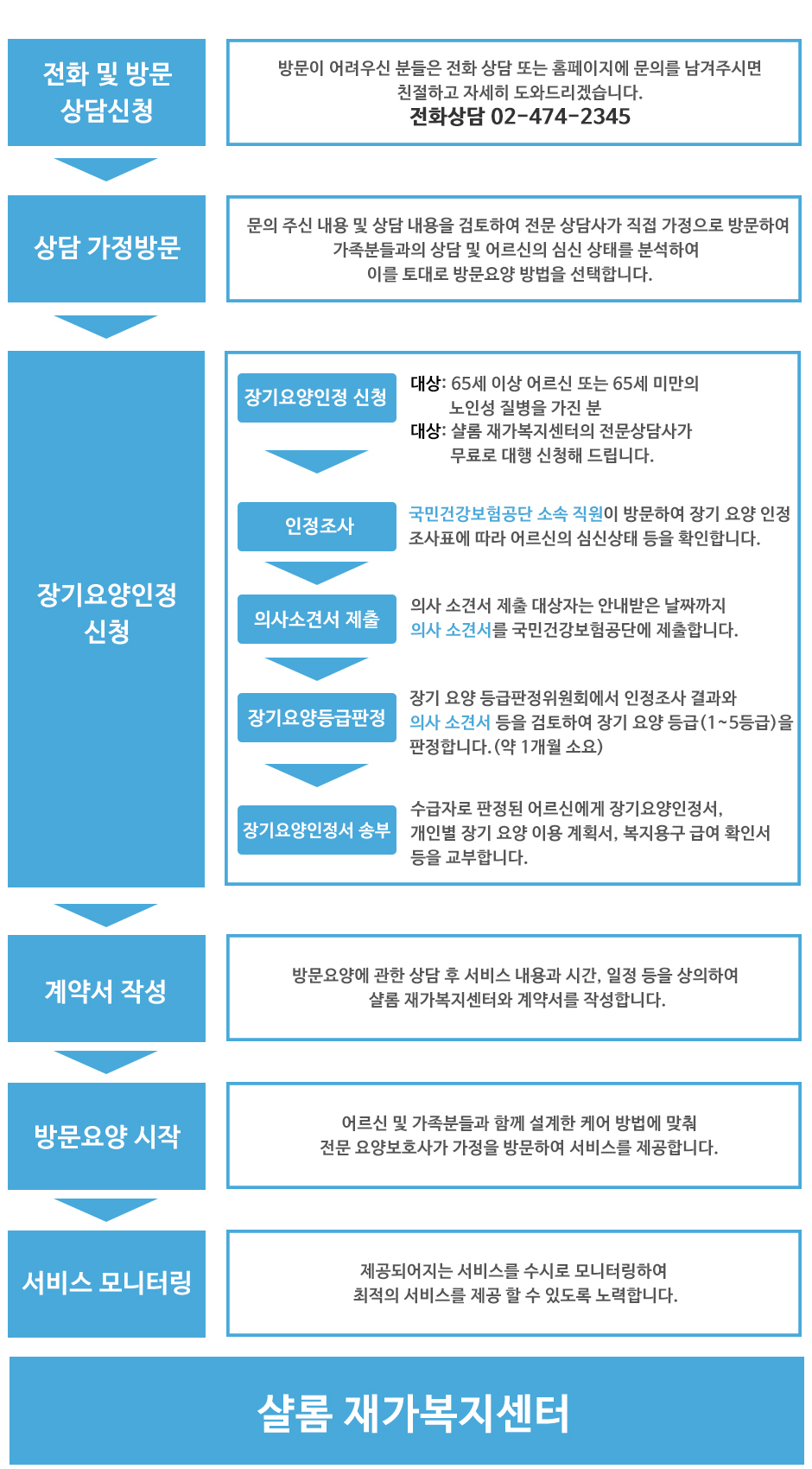 샬롬 재가복지센터가 쉽고 자세하게 도와드리겠습니다.